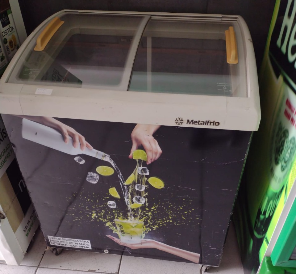 Freezer horizontal para estabelecimentos comerciais. Fabricante: Metalfrio. Tensão: 220 V.