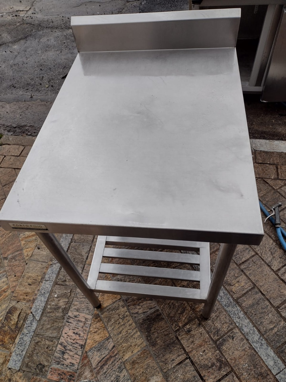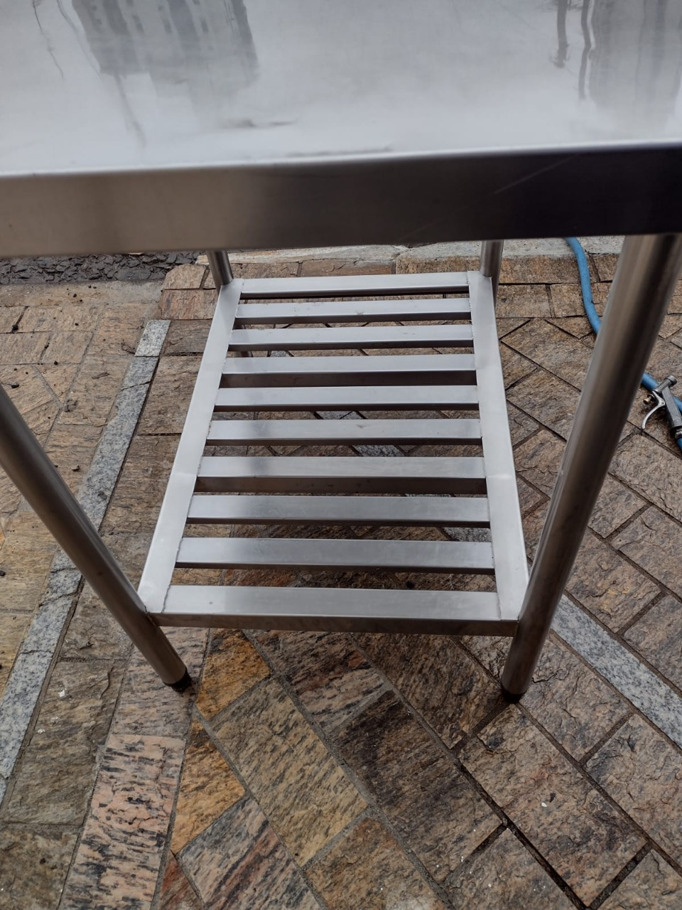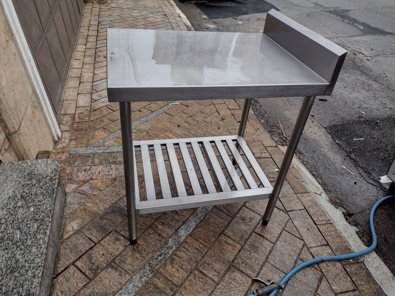 Mesa com espelho e prateleira inferior vazada. Medidas: 80 x 60 x 90 cm.