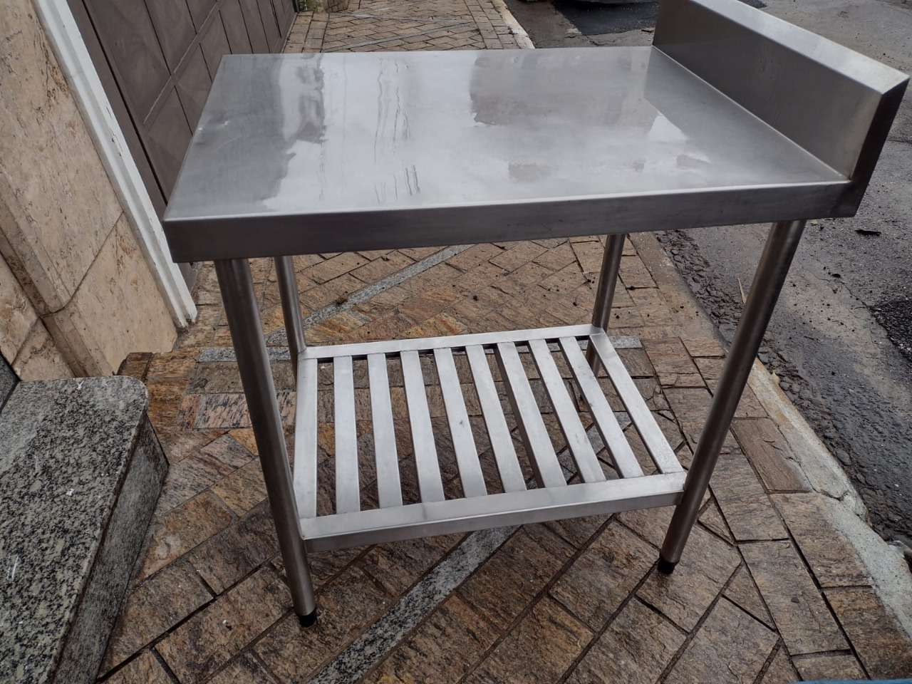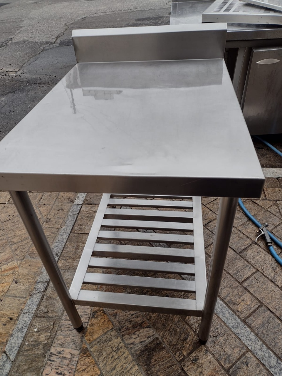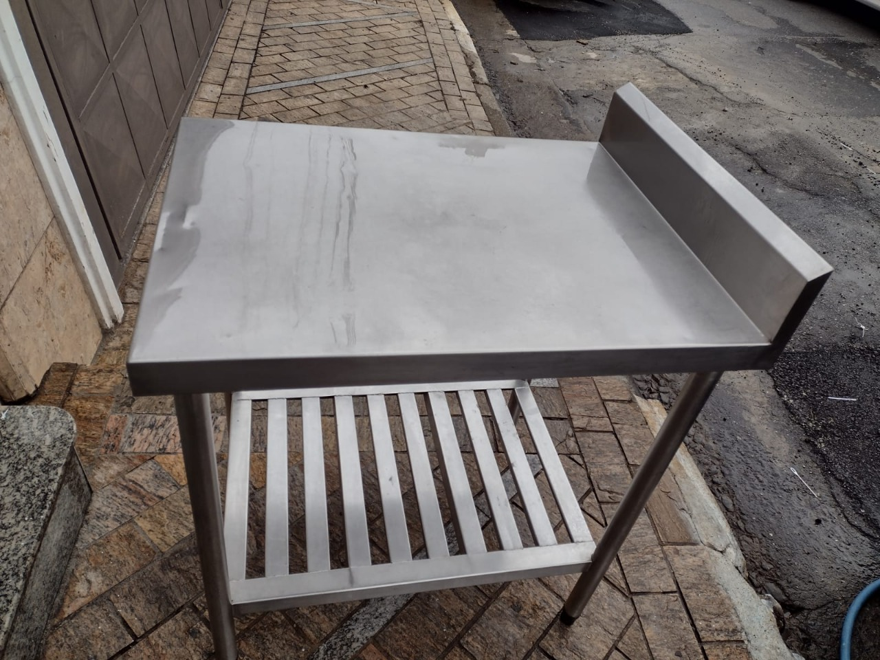 Mesa com espelho e prateleira inferior vazada. Medidas: 80 x 60 x 90 cm.