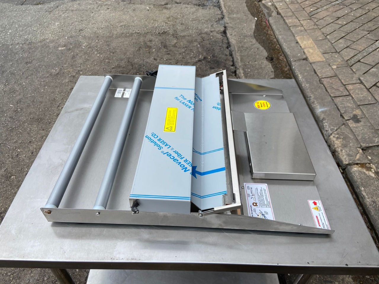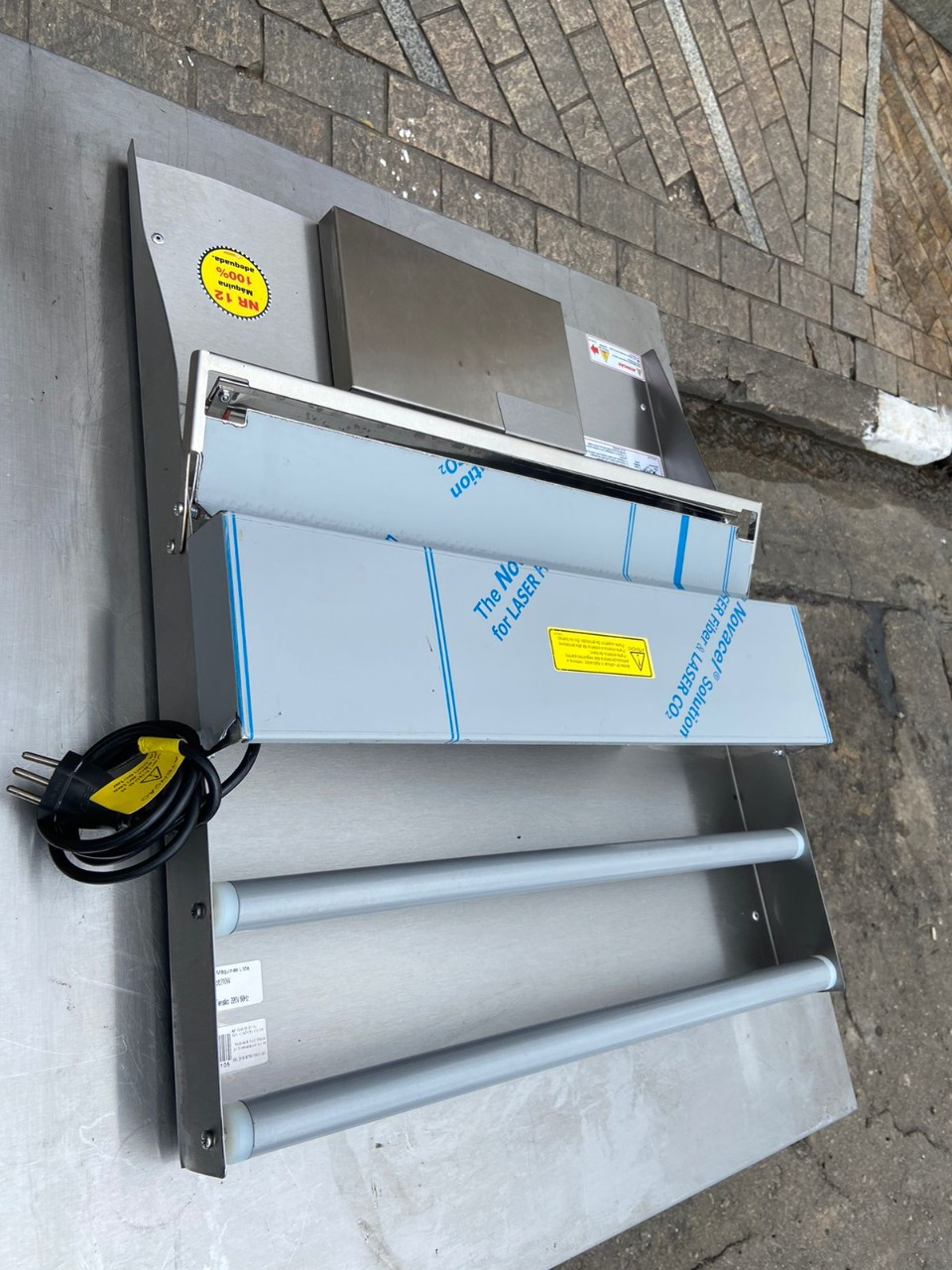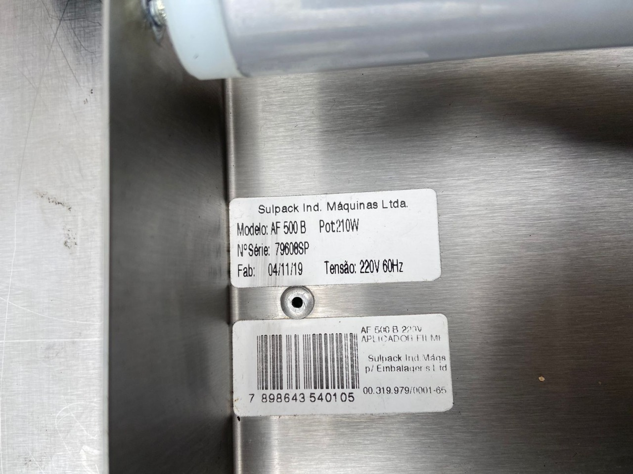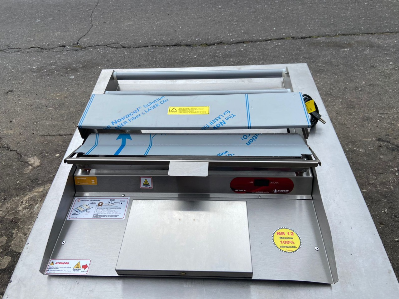 Seladora fabricada em aço inox escovado, com sistema de corte do filme através de barra de inox e equipada com termostato interno acoplado para prevenção de superaquecimento da placa de selagem. Produto certificado conforme NR 12. Fabricante: Sulpack